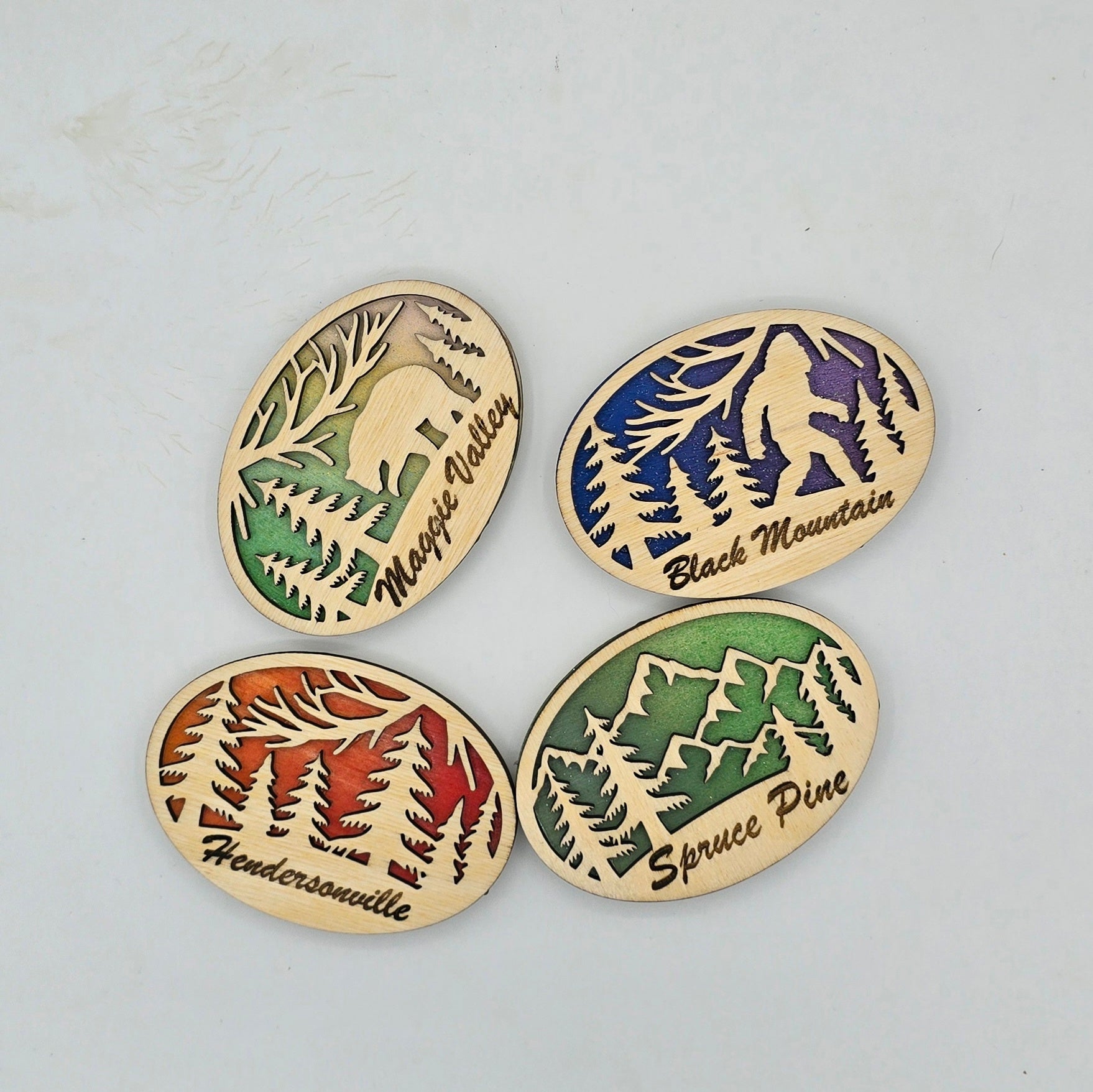 Display your love for your favorite town with our unique multi layer magnets! Choose from various quirky North Carolina towns and add a touch of personality to your fridge or magnet board. Perfect for locals or anyone who loves this charming state!