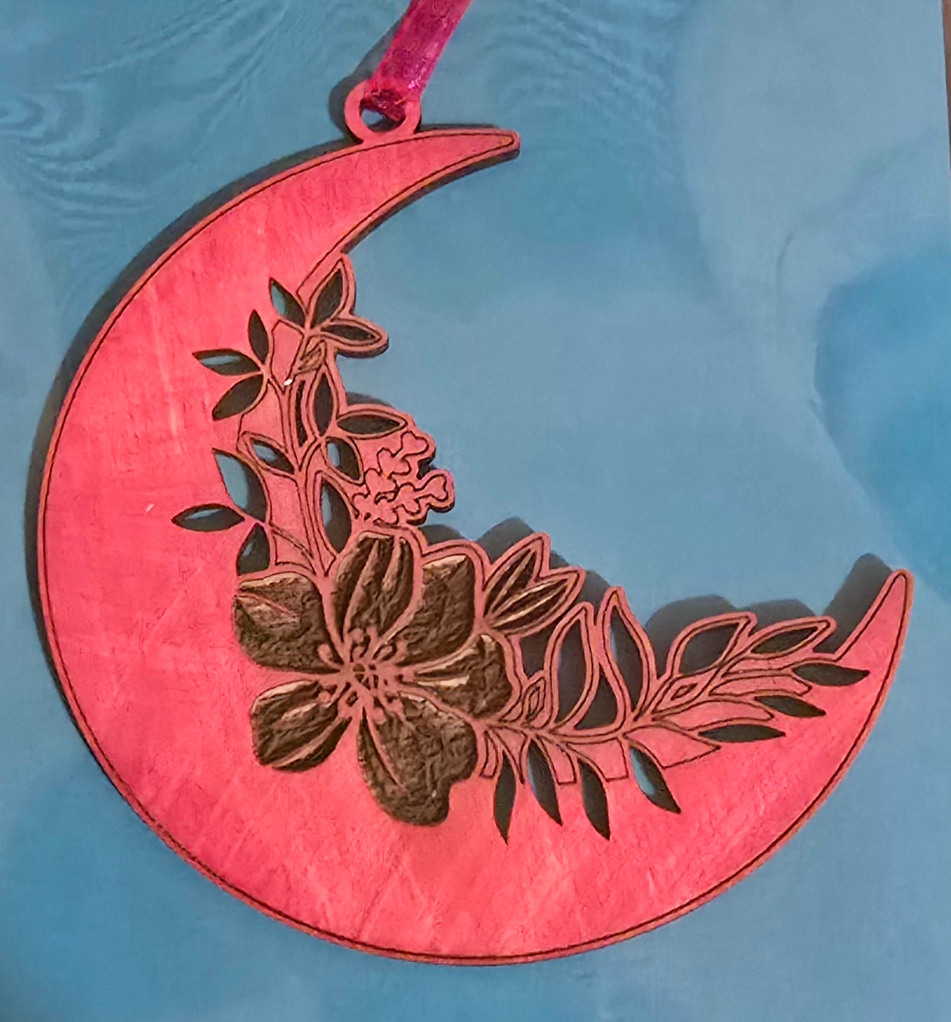 Introducing Flower Moon, the perfect addition to your home decor. Available in natural wood or charmingly pink stained wood, this moon design is sure to add a touch of whimsy to any room. Bring the beauty of nature into your space with Flower Moon.